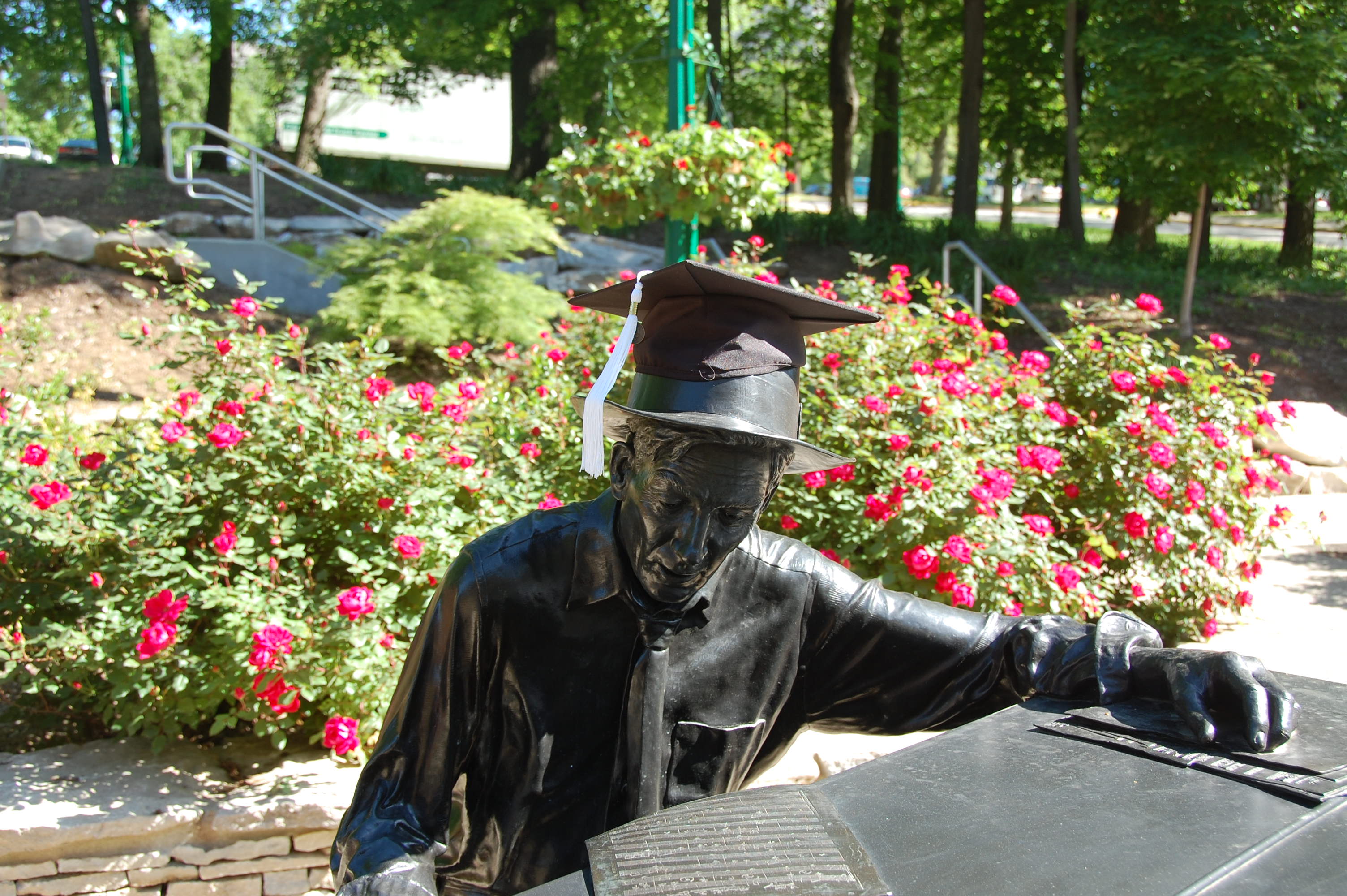 Tags: Auditorium, bloomington, commencement, Hoagy Carmichael, Indiana, IU, mortar board, statue, tassle