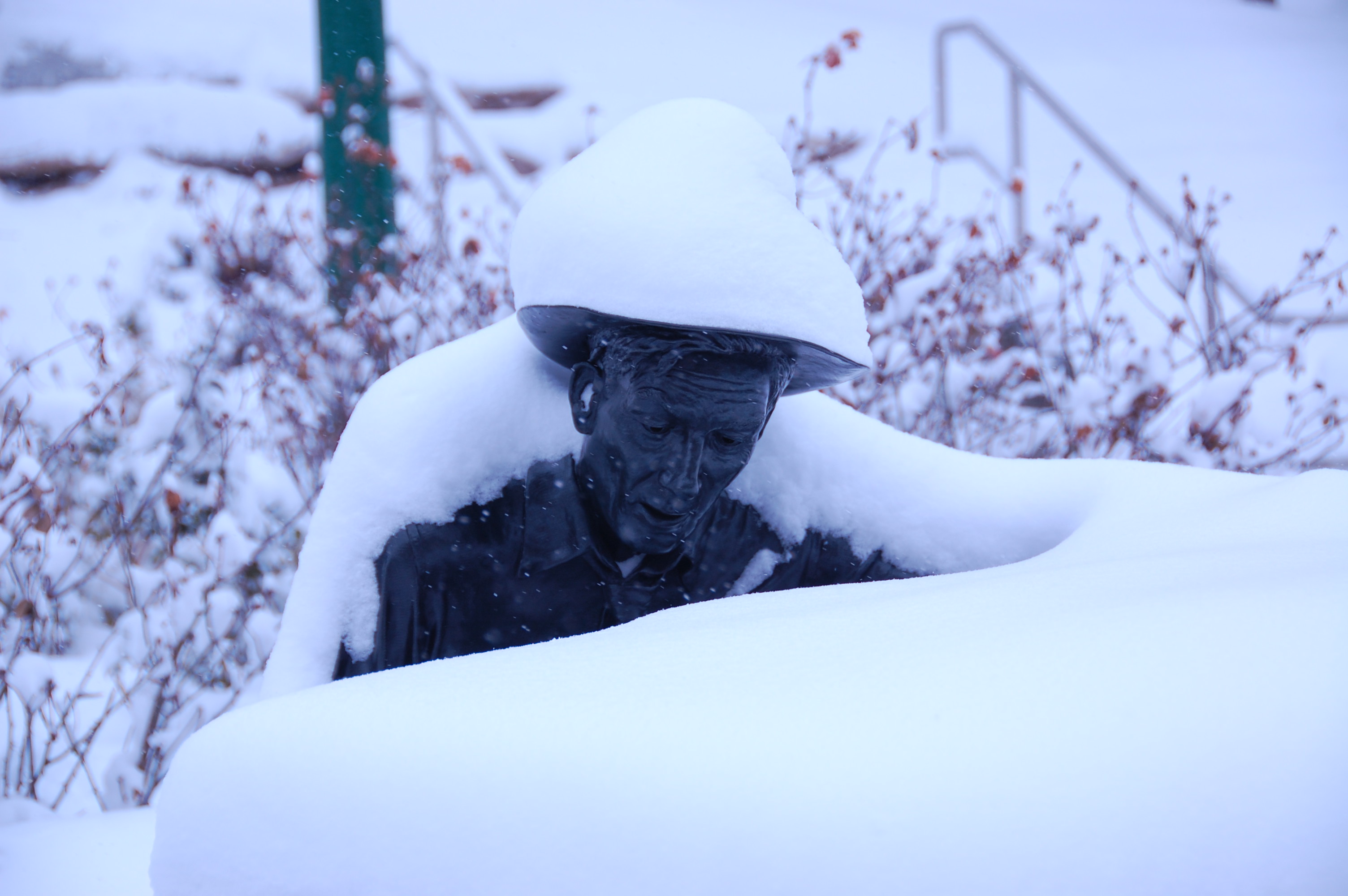 Tags: Auditorium, bloomington, Hoagy Carmichael, Indiana, IU, snow, statue