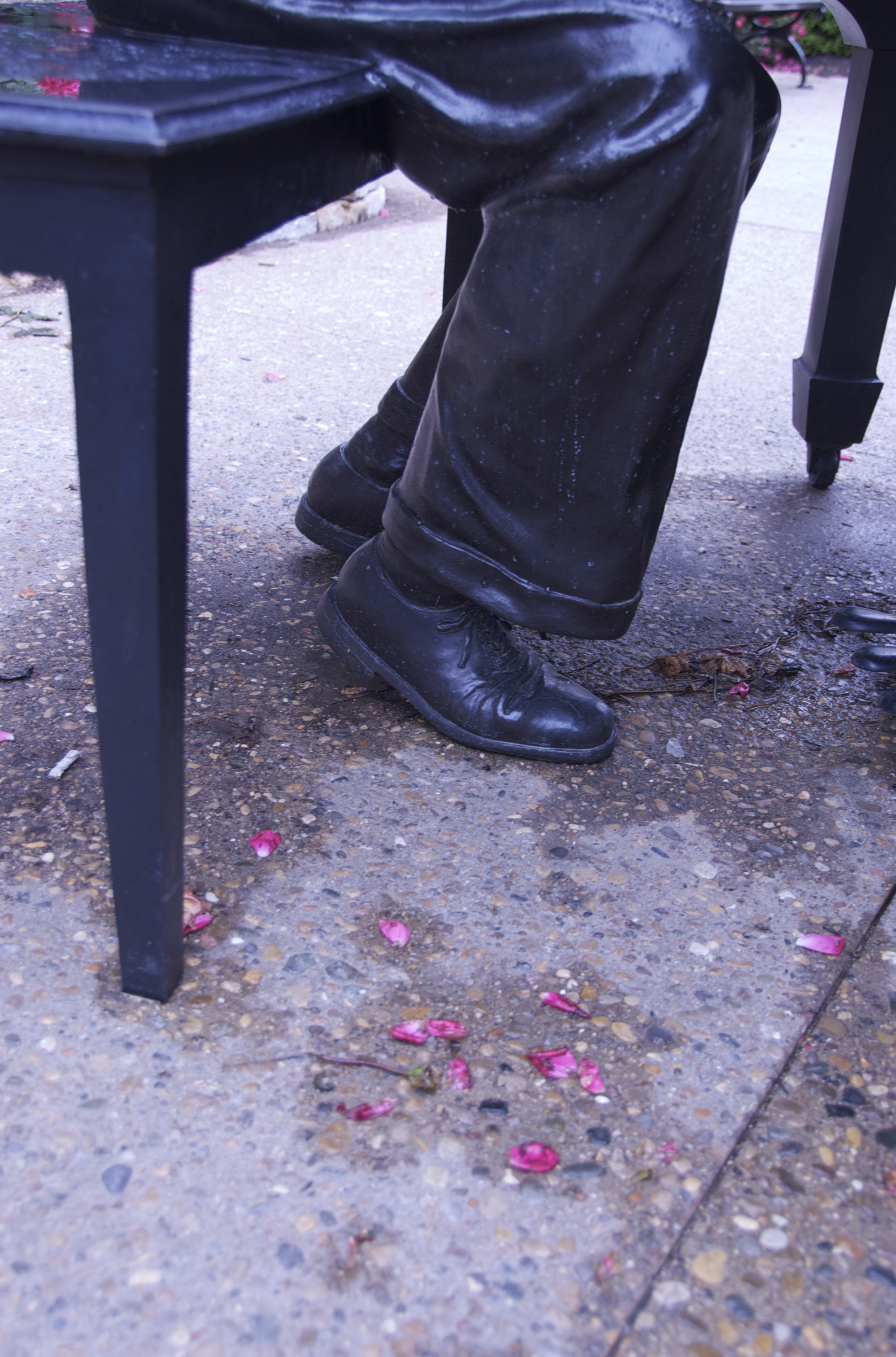 Tags: Auditorium, bloomington, bronze, dried flowers, Hoagy Carmichael, Indiana University, petals, statue