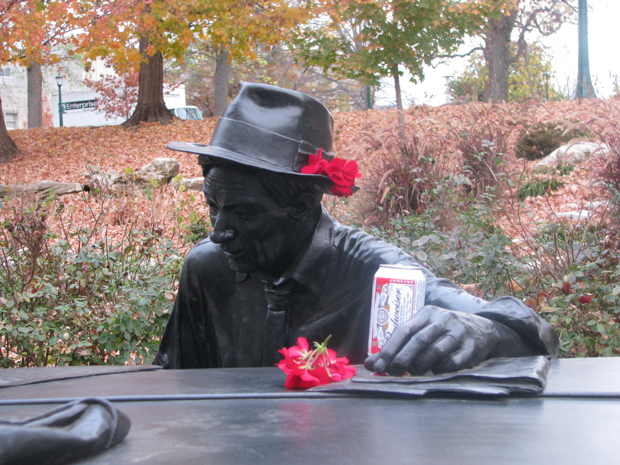 Tags: Auditorium, beer, bloomington, bronze, bud, budweiser, geranium, Hoagy Carmichael, piano, red, statue