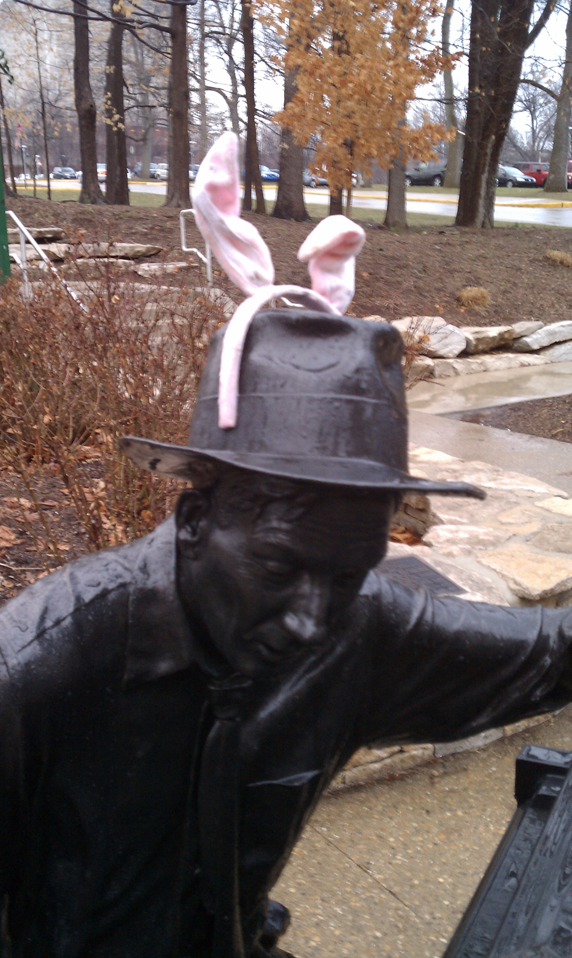 Tags: bloomington, bronze, bunny, carmichael, ears, easter, Hoagie, hoagieland, hoagland, hoagy, Hoagy Carmichael, pink, statue