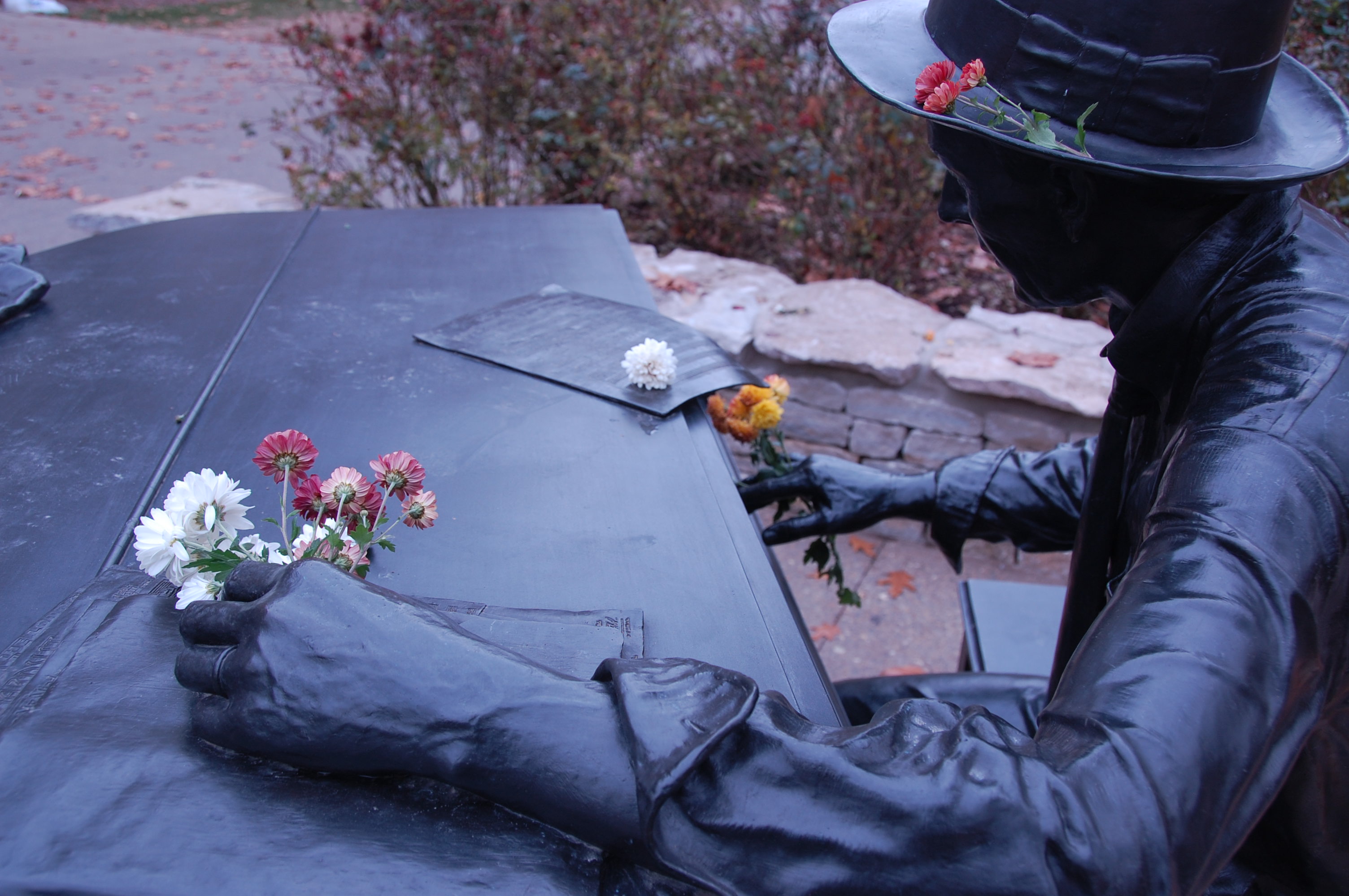 Tags: bronze, carmichael, flowers, hoagland, Hoagy Carmichael, hoagyland, Indiana University, piano, statue