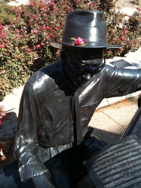 Tags: brim, bronze, cool, flower, hat, Hoagy Carmichael, Indiana University, statue, sunglasses
